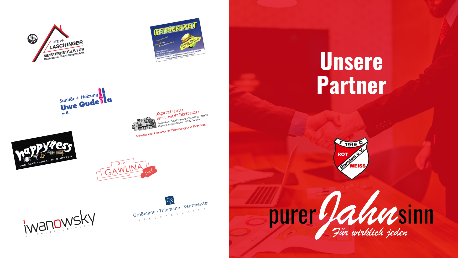 Ohne die Unterstützung unserer – teils langjährigen – Sponsoringpartner wäre ein sozialverträgliches Sportangebot im Rahmen unserer Vereinsarbeit nicht möglich. Ihnen gilt unser rot-weißer Dank für die wertvolle Förderung des Sports und der Jugendarbeit!